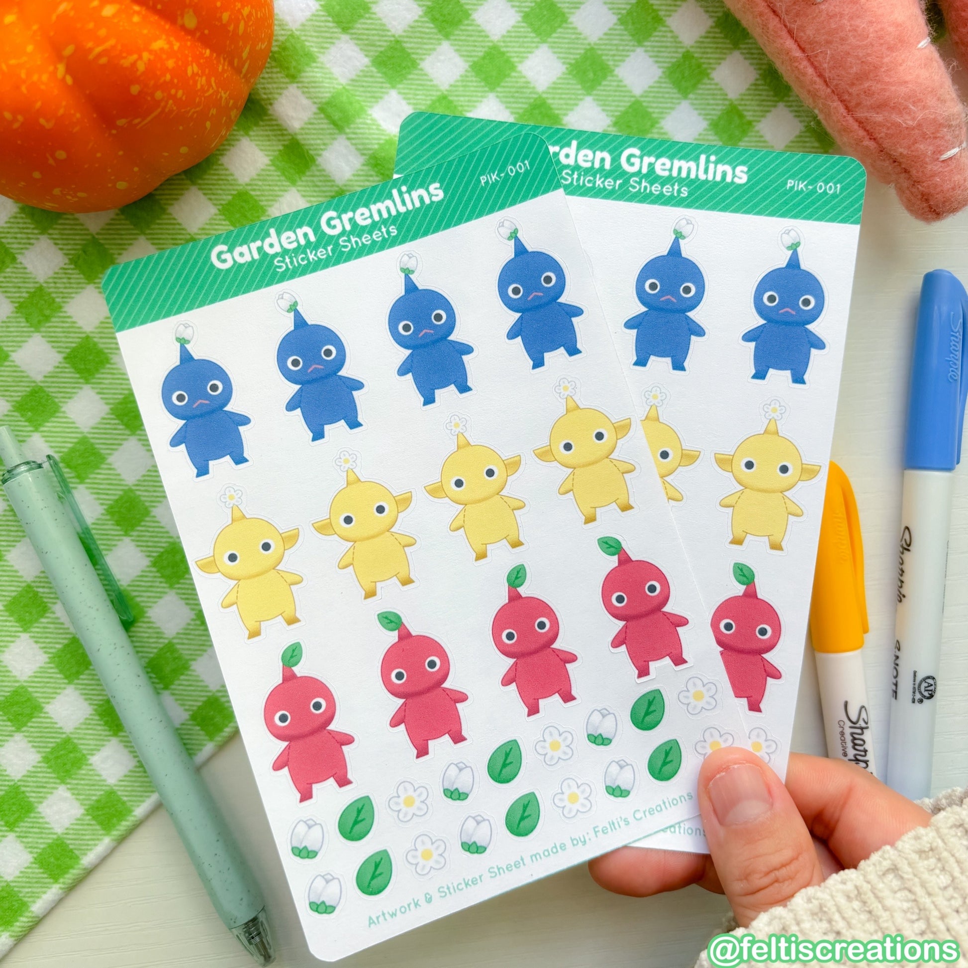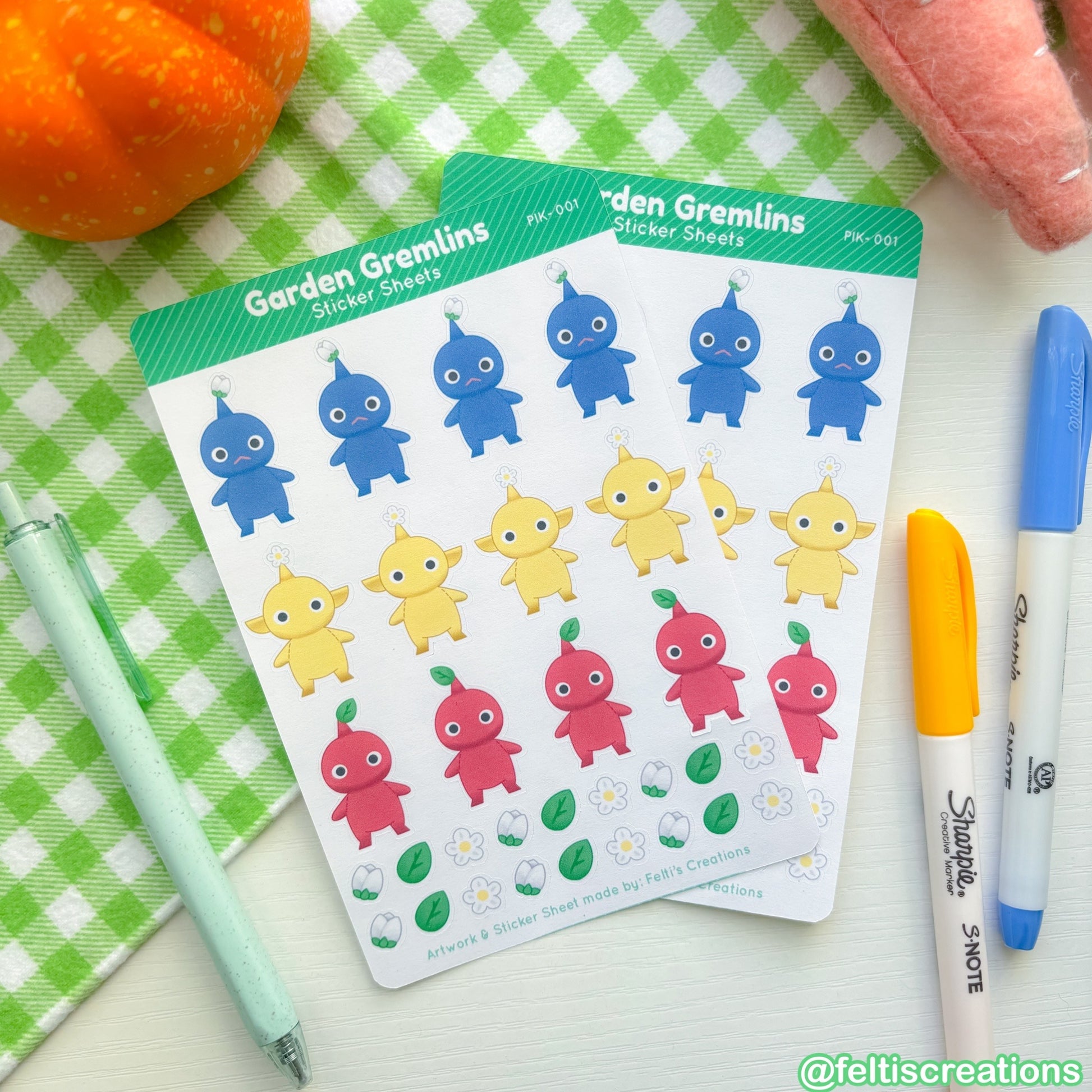 This sticker sheet is inspired by the creatures hiding in your garden Pikmins! These are perfect to decorate your bullet journals, agendas, notebooks, and more with the cute faces of some of the Pikmins you can find! These designs are completely made by me digitally as well as the item itself is made in the comfort of my home.