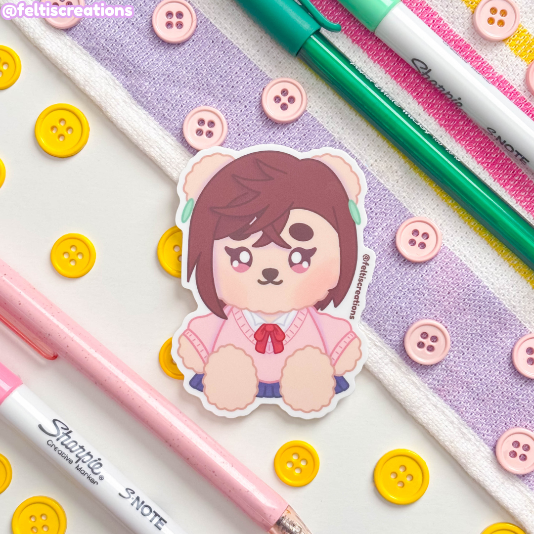 These die-cut vinyl stickers feature tough yet adorable teddy bears inspired by a gritty tale of sisterhood and rebellion. Cute meets chaos—perfect for fans of fierce vibes with a soft twist!