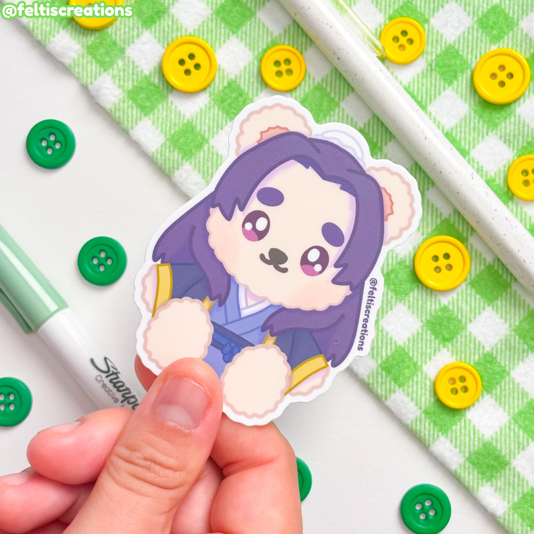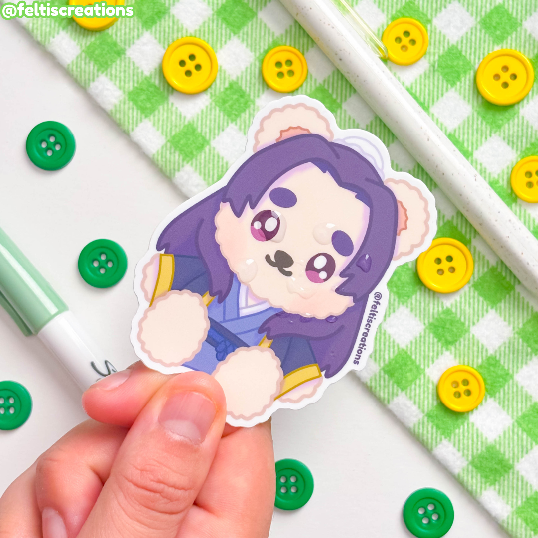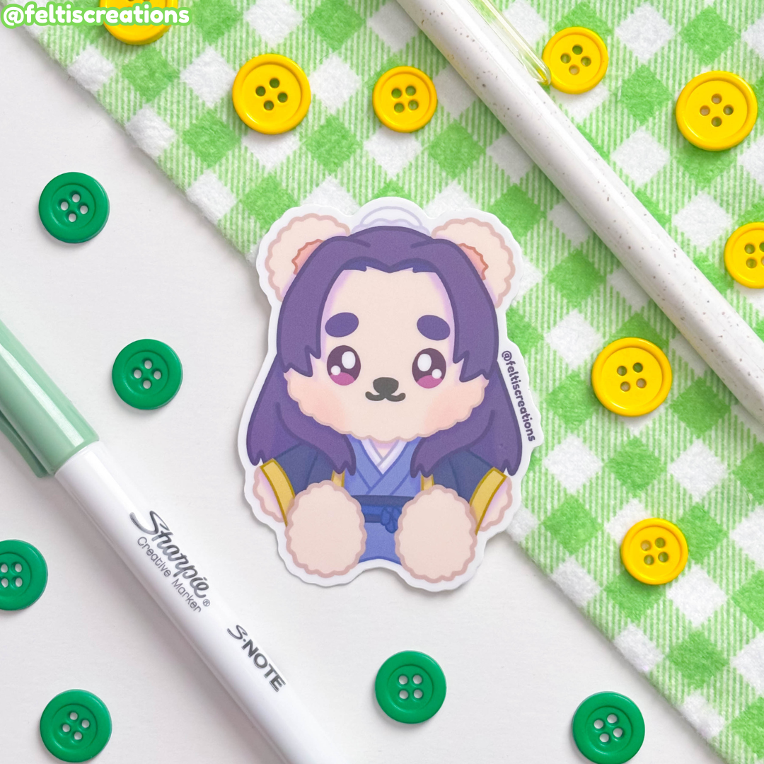 Adorable teddy-bear–style vinyl stickers inspired by a certain clever herbalist and her elegant companion from a popular mystery-drama series. Perfect for personalizing laptops, water bottles, phone cases, and more. Add a touch of charm to your everyday items with this interesting duo.