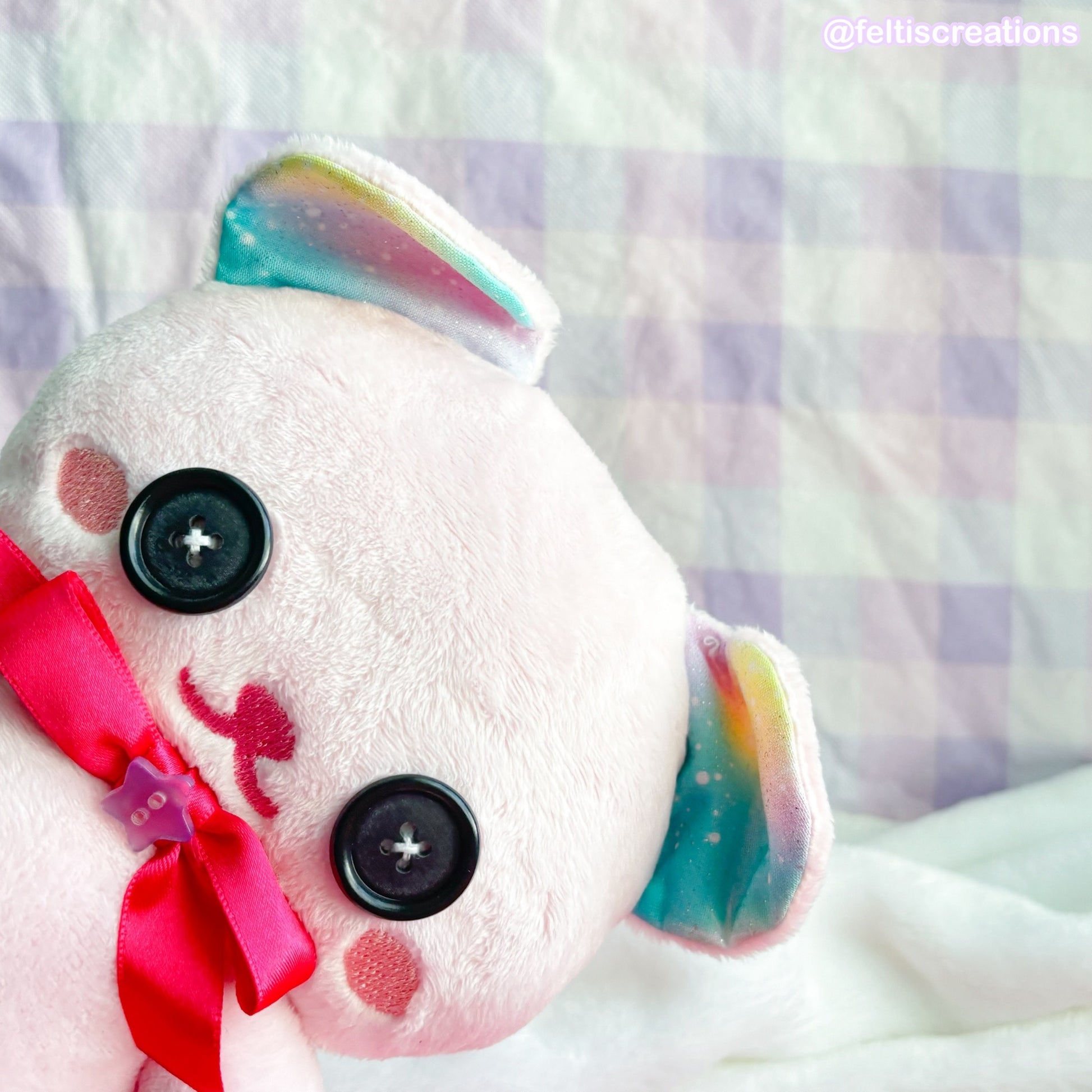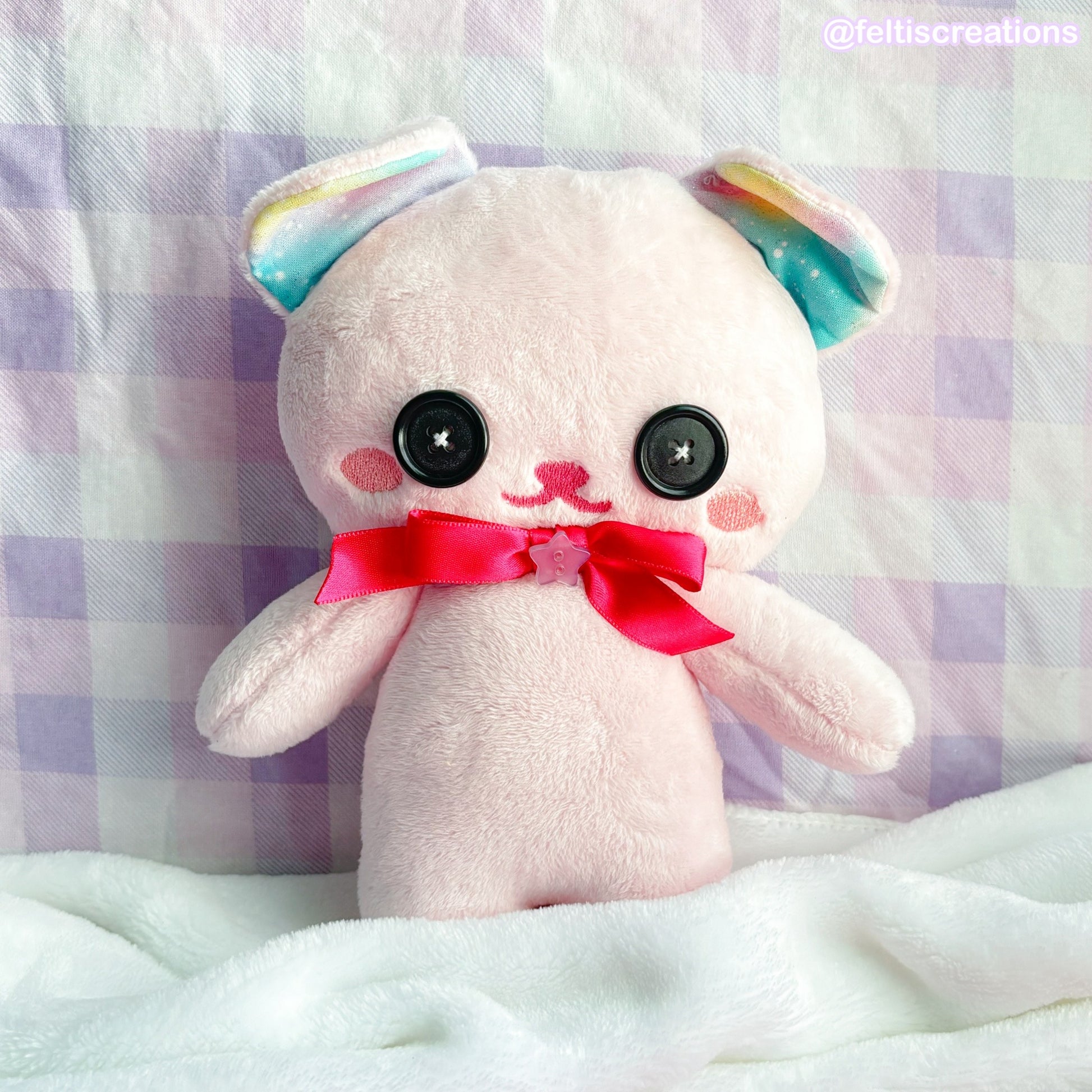 Introducing our next line of Original plushies, Button Pals Plushies! These are one-of-a-kind handmade plushies made with a unique combination of fabrics and prints. Every release will feature a different color and print combination with different accessories making them each different on its own.