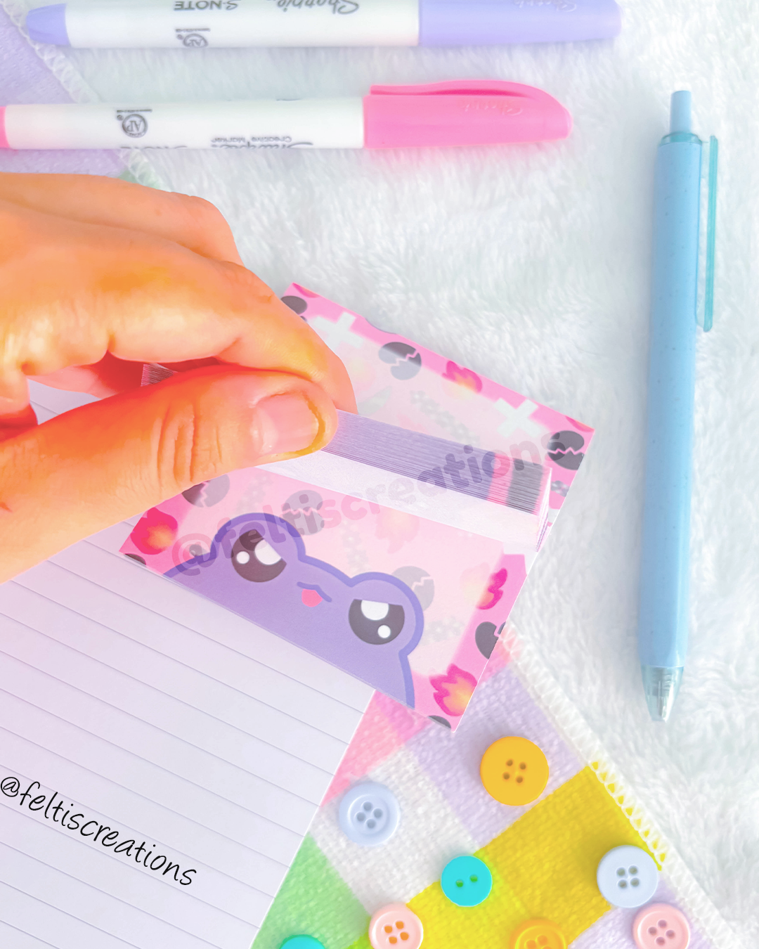 Need some super cute Sticky Notes? Here's the brand new Froggy Sticky Notes featuring some of our original froggy designs. These can perfectly match your keychain or bookmark.