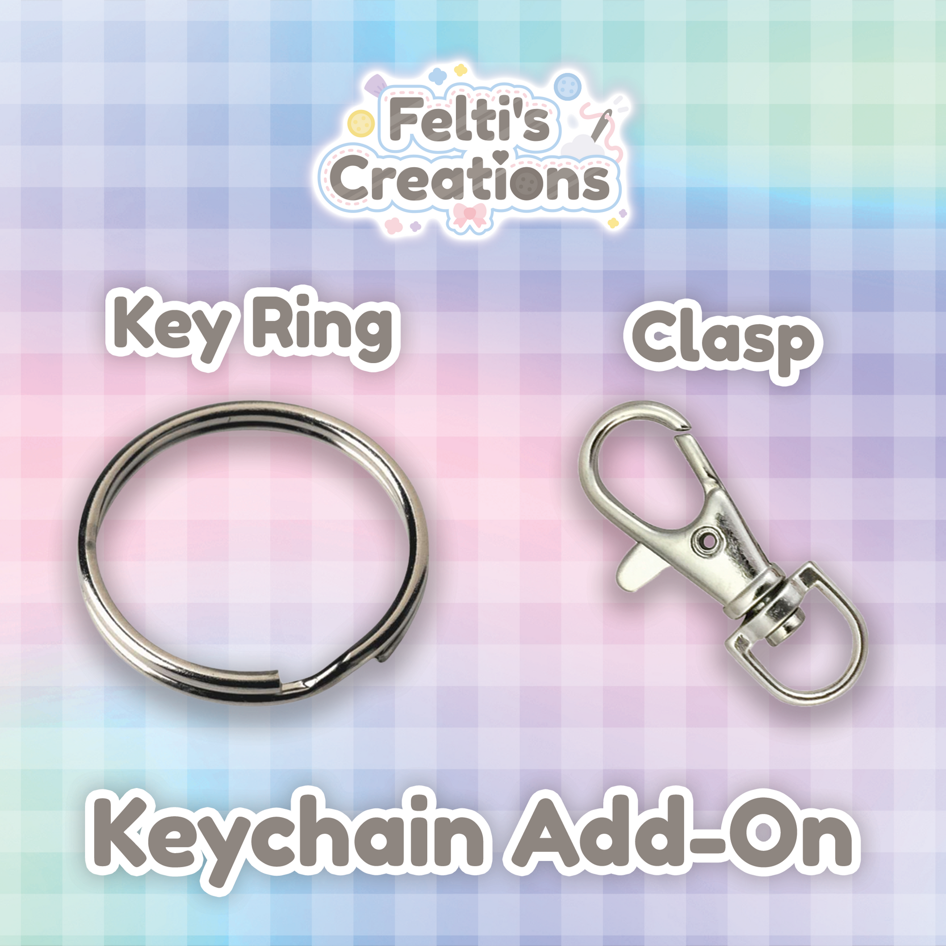 This keychain add-on allows you to choose between a keyring or a clasp to attach your Plush Keychains or Wrislet orders. Perfect for having options to how you would like to organize your keys or accesories.