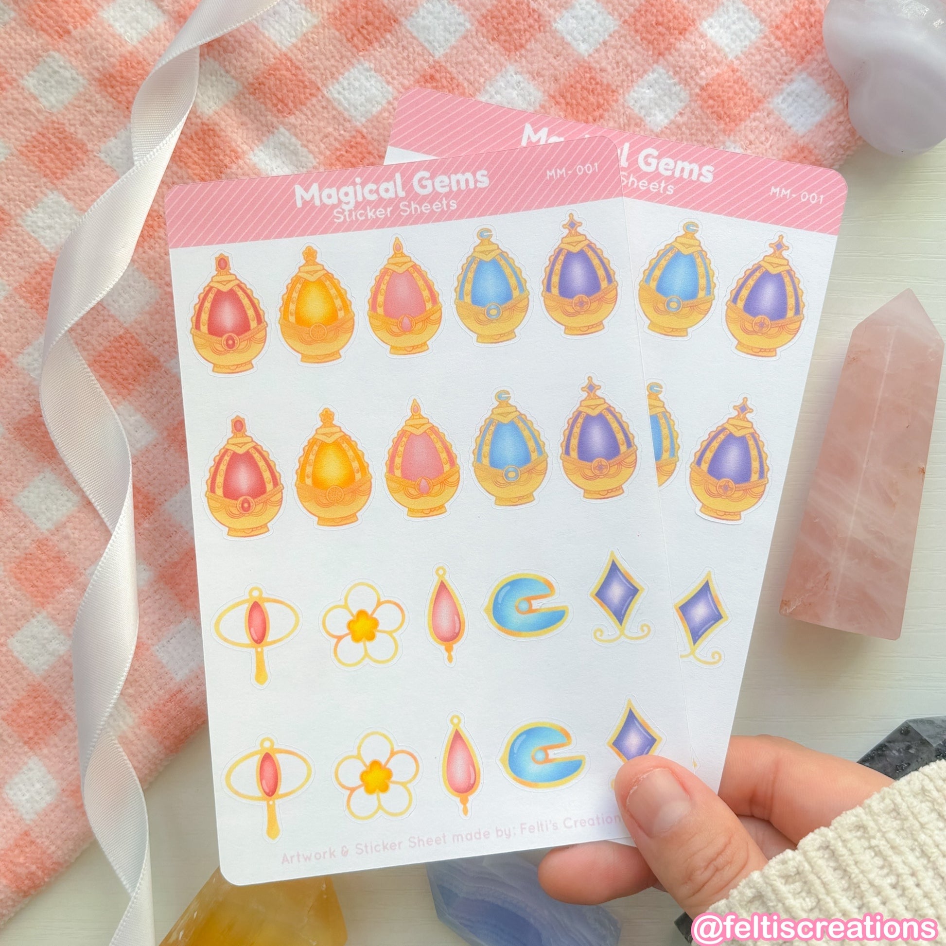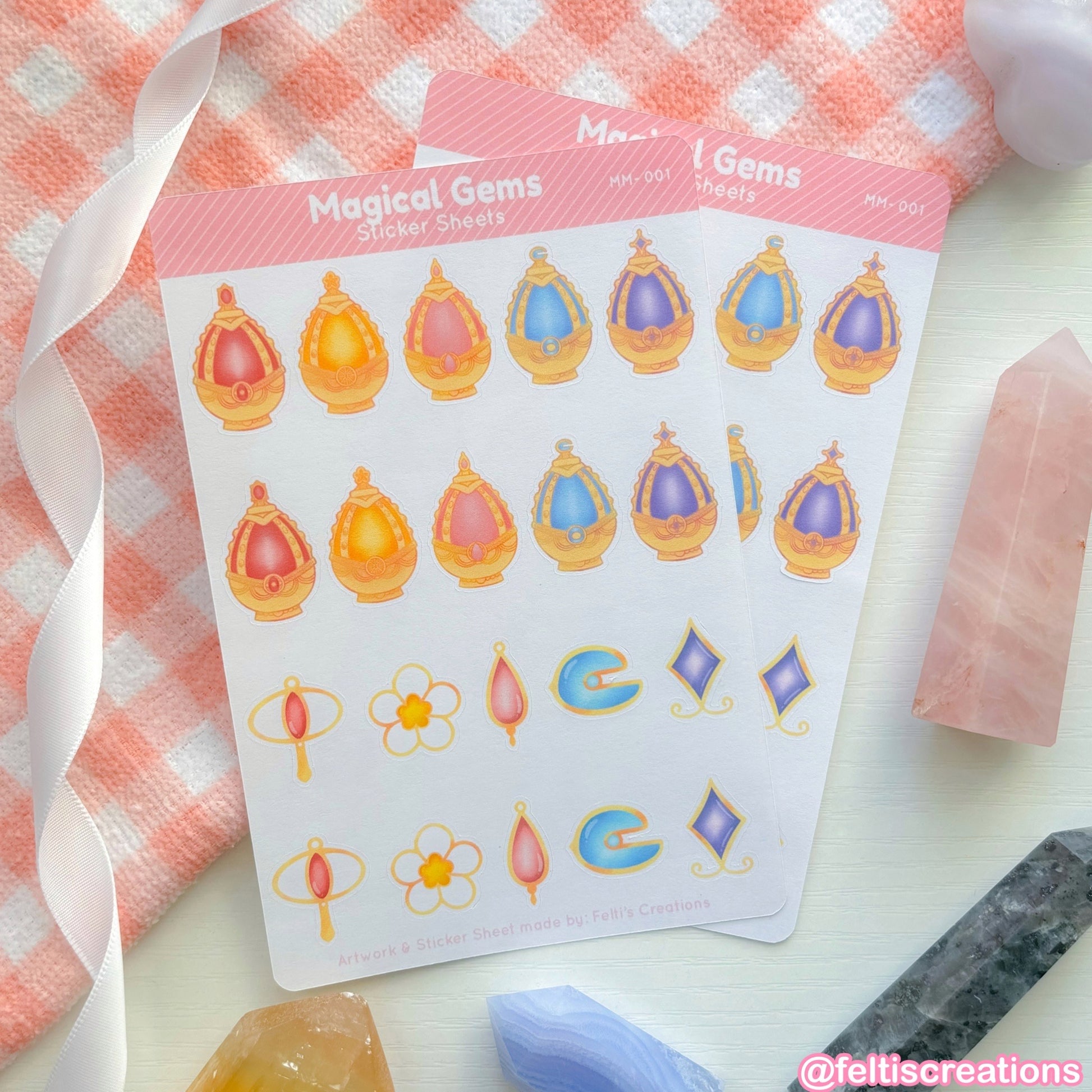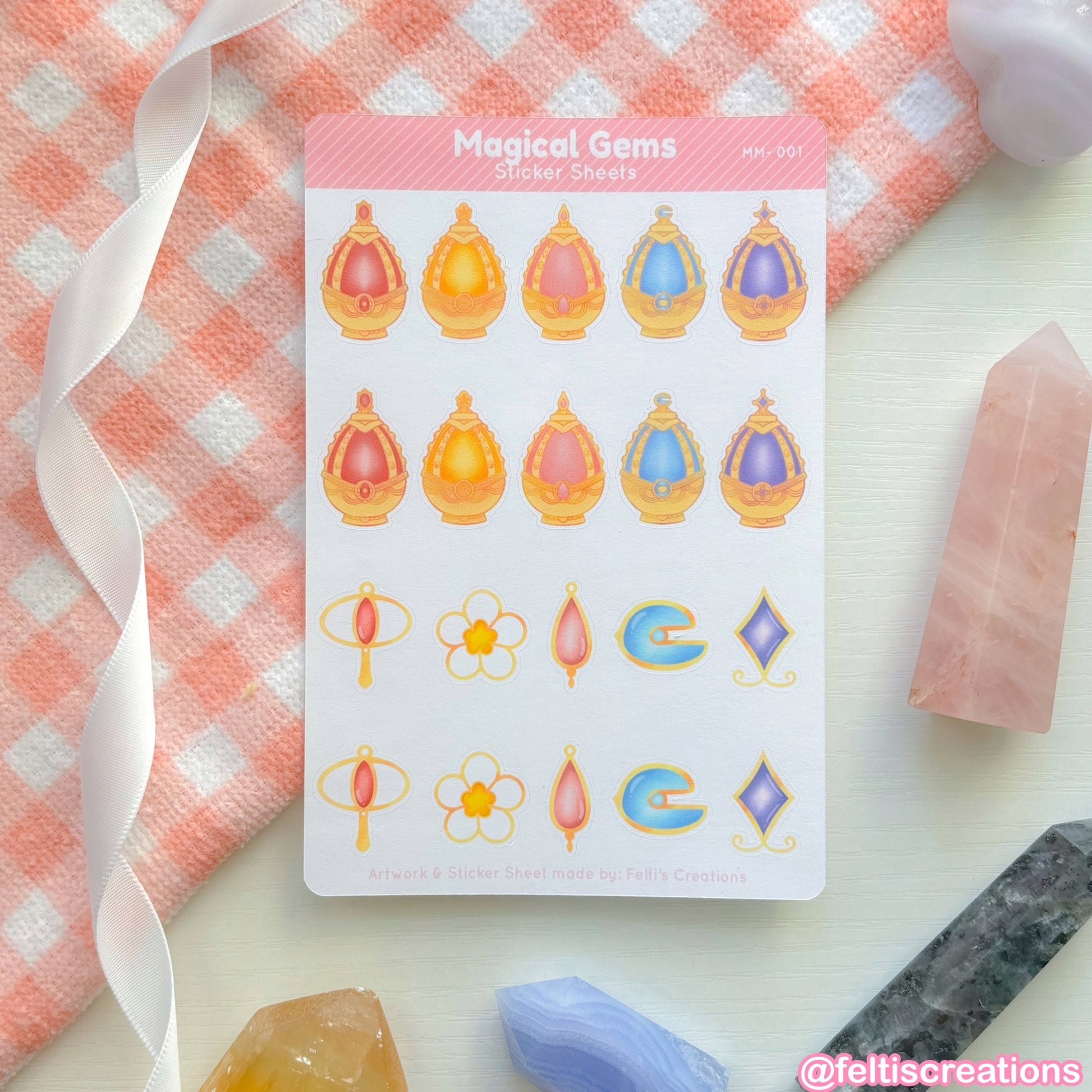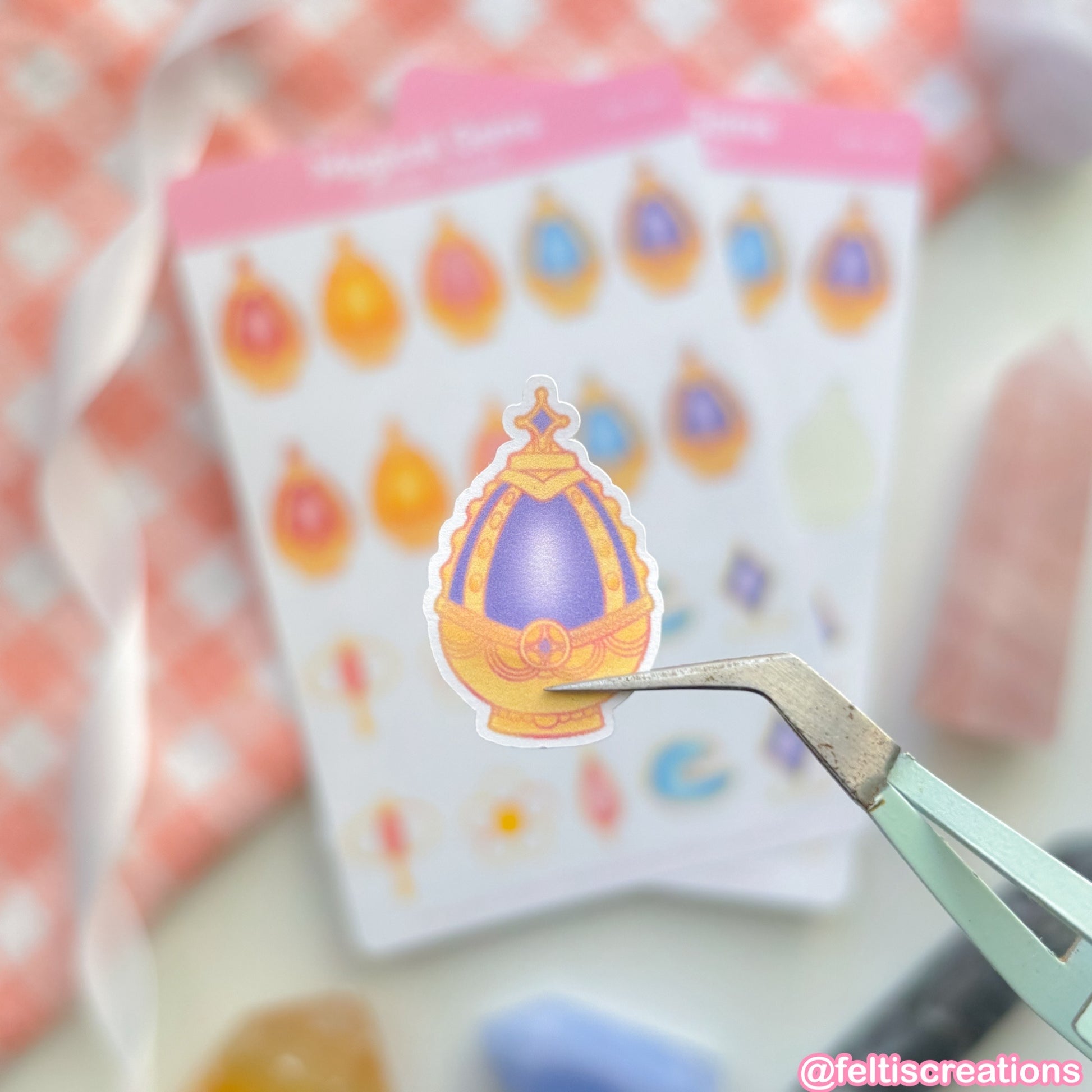 This sticker sheet is inspired by the Soul Gems you receive after making a contract ! These are perfect to decorate your bullet journals, agendas, notebooks, and more with the cute faces of some of the magical girls artifacts from your favorite magical girls ! These designs are completely made by me digitally as well as the item itself is made in the comfort of my home.
