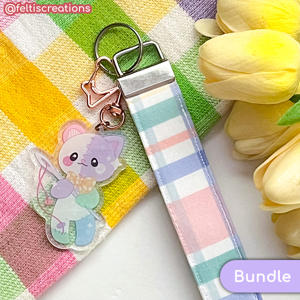 Keep your keys safe and show off your style with our Scrap Box Key Fobs! These cute and character-themed wristlets are handmade with cotton fabric and include a keyring.