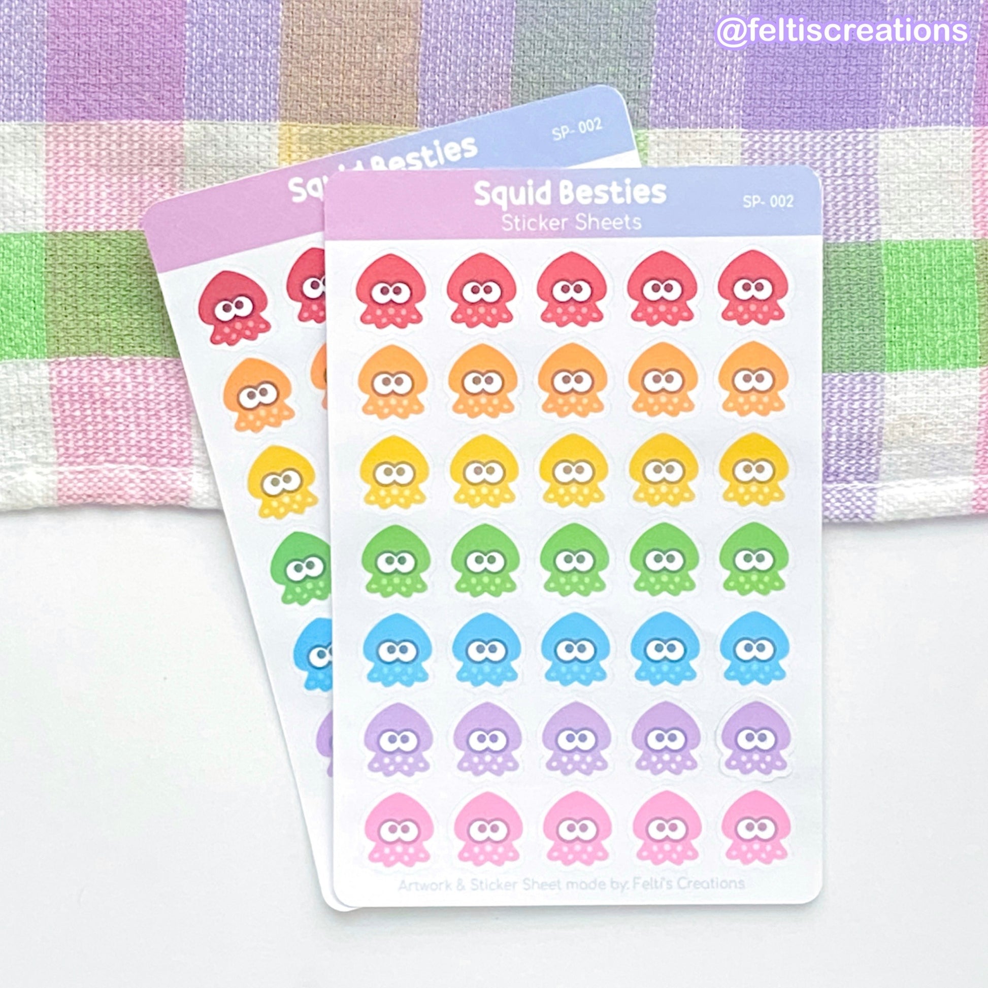 This sticker sheet is inspired by the Octolings & Inklings from the video game, Splat0on. These are perfect to decorate your bullet journals, agendas, notebooks, and more with the silly fluffy enemies that you encounter in-game. They are perfect to help you organize your journal with your farming strategies for materials for your different accensions or level-ups. These designs are completely made by me digitally as well as the item itself is made in the comfort of my home!