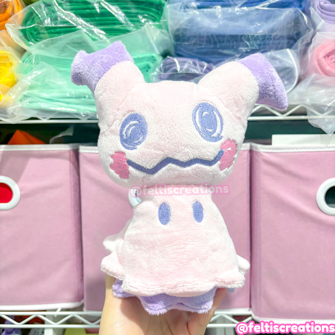 Meet Mimi-Chu, a shy and spooky handmade plush with a love for disguises and attention. Crafted with soft materials and stitched with care, this plush brings a ghostly charm to any collection. Its stitched-up look and floppy costume give it a perfectly eerie-cute vibe. Ideal for fans of misunderstood, ghostly creatures!